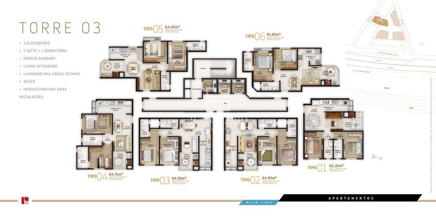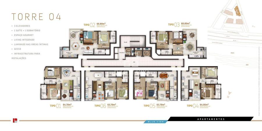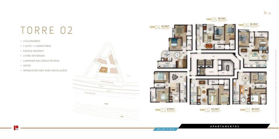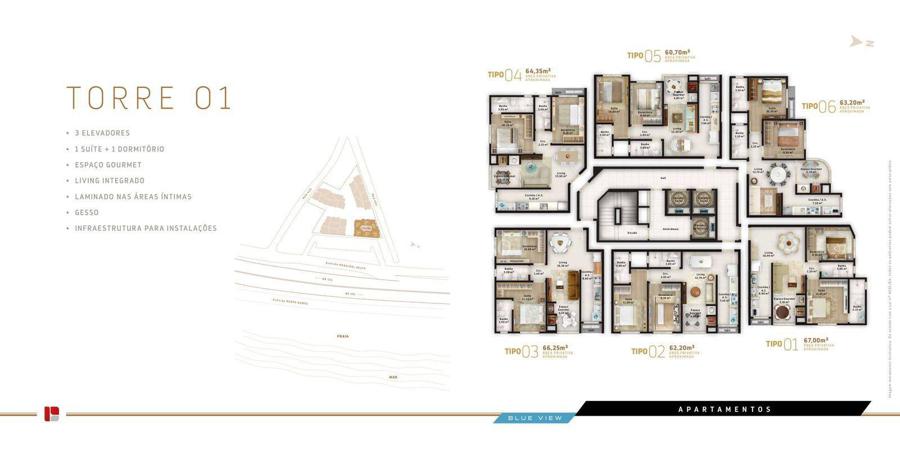 - Área privativa aproximada: 60,00m² a 67,00m²