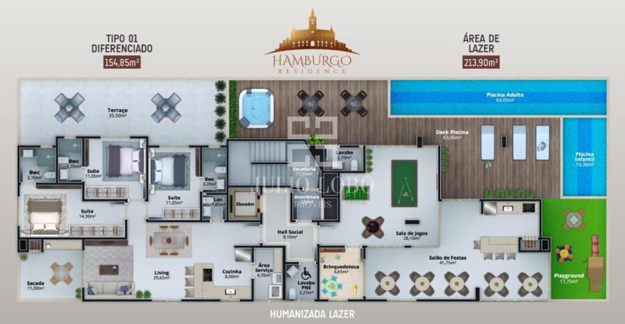 - Área privativa aproximada: 154,85m²