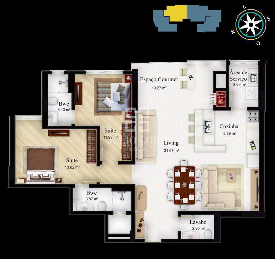 - 3 dormitórios, sendo 1 suíte e 2 demi-suítes