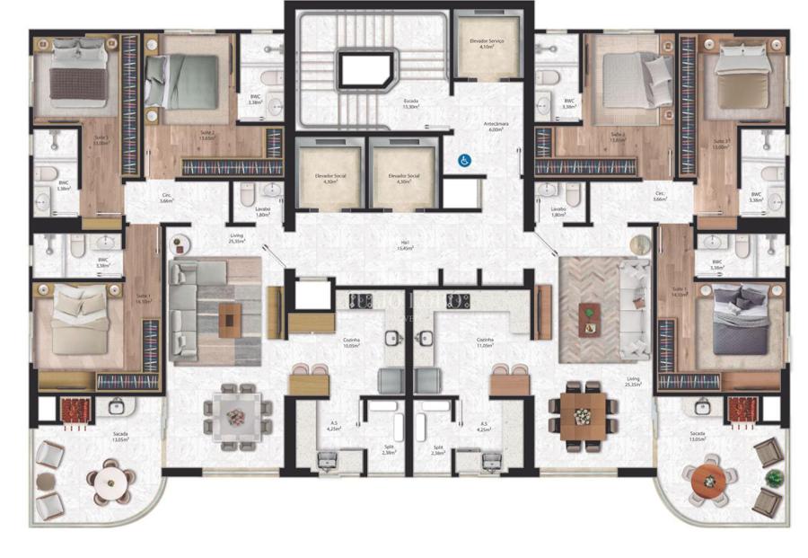 - Área privativa aproximada: 130,00m²